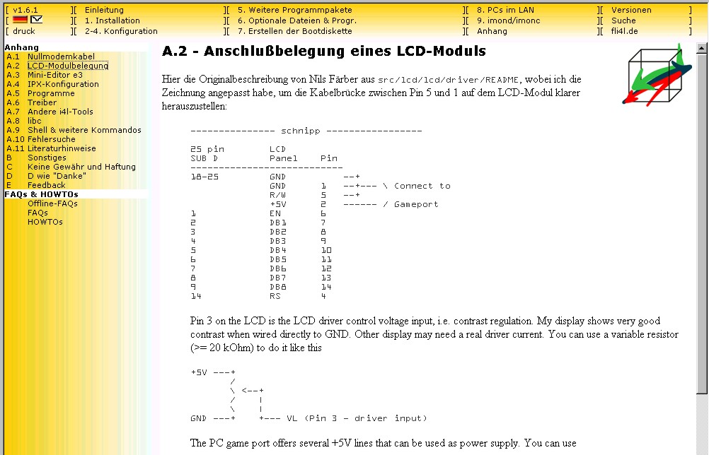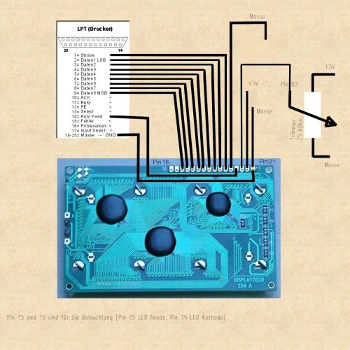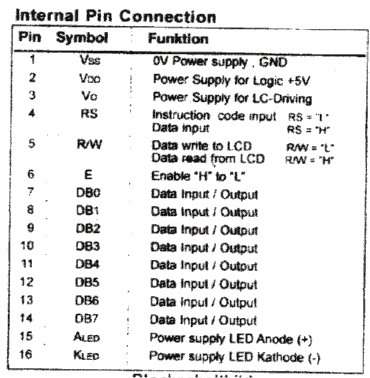 Hier könnt Ihr euch einen Auszug, den Pin-Anschlußplan für meine LCD-Anzeige ansehen.