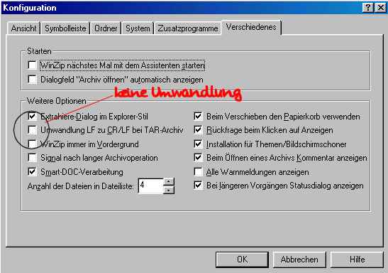 Einstellung von WinZip